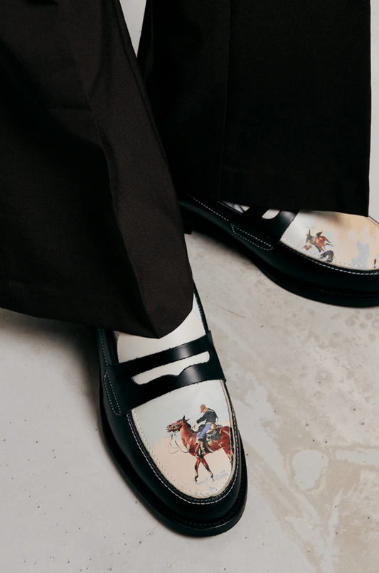 Duke & Dexter - Wilde Black + White Pony Penny Loafer