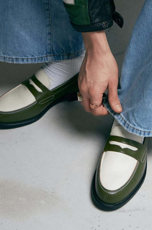 Duke and Dexter - Wilde Olive White Penny Loafer