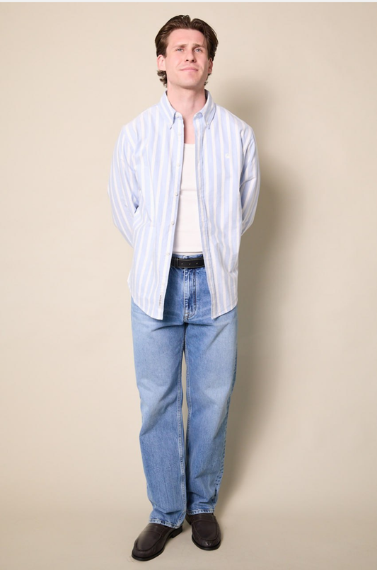 Wax London - Corey LS Shirt Seersucker Stripe Blue/Ecru