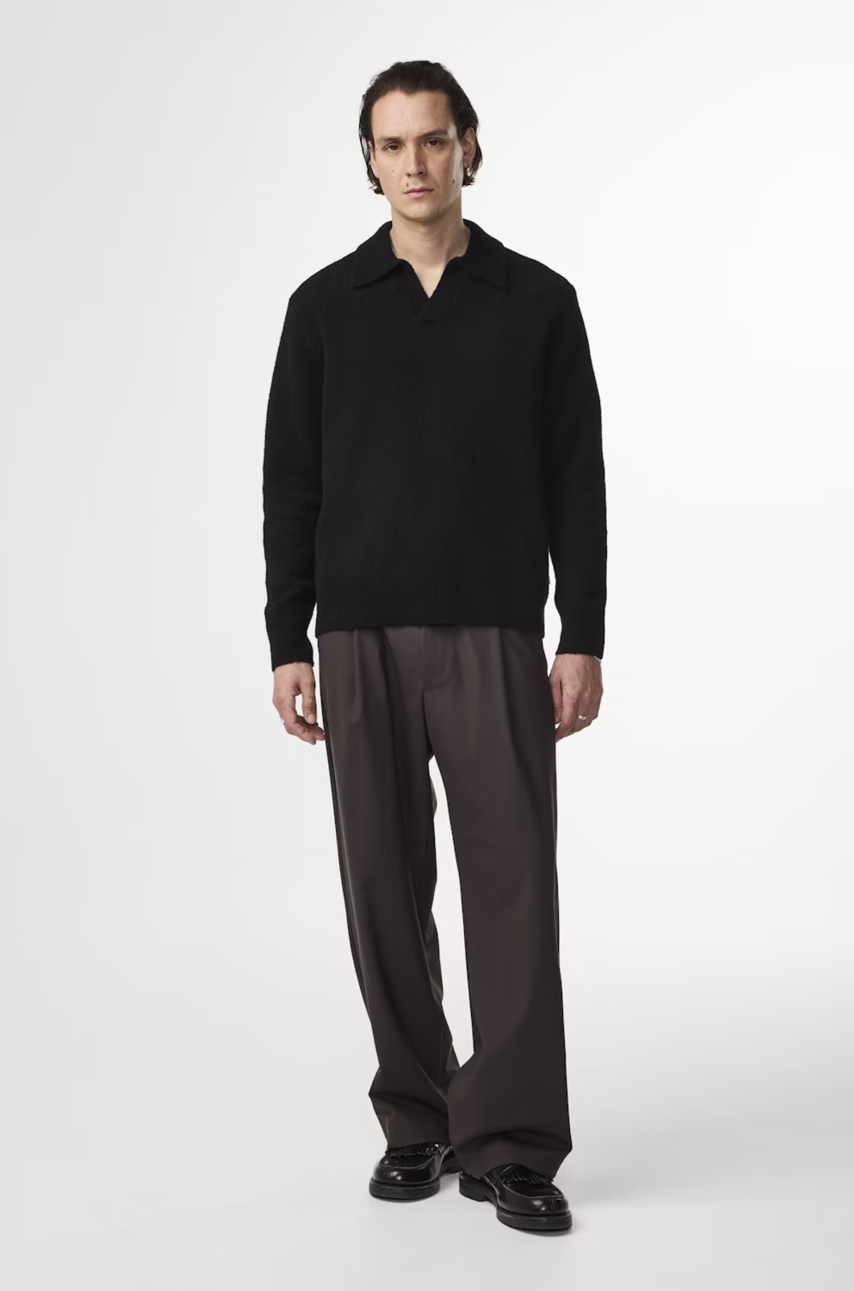 Design: Klassischer, offener Polokragen mit Bouclé-Textur – leise, aber wirkungsvoll in der Optik.