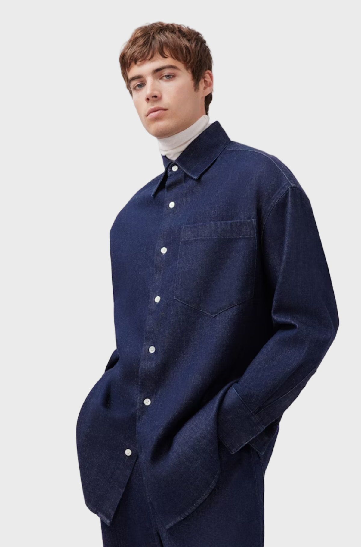 Ein zeitgemäßes Hemd mit Oversized-Passform, das Denim in einen vielseitigen Statement-Look verwandelt – lässig, geschlechterneutral und elegant in der Wirkung. 01.849013-0019